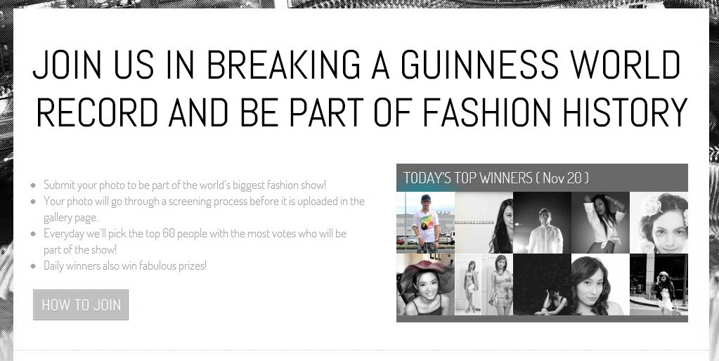 I know you are familiar in Glorietta Vibe event this coming November 29, 2012 at 5:00pm. There are 2,500 models who will beat the Guiness World Record of ”The Most People Modeling on a Catwalk.”